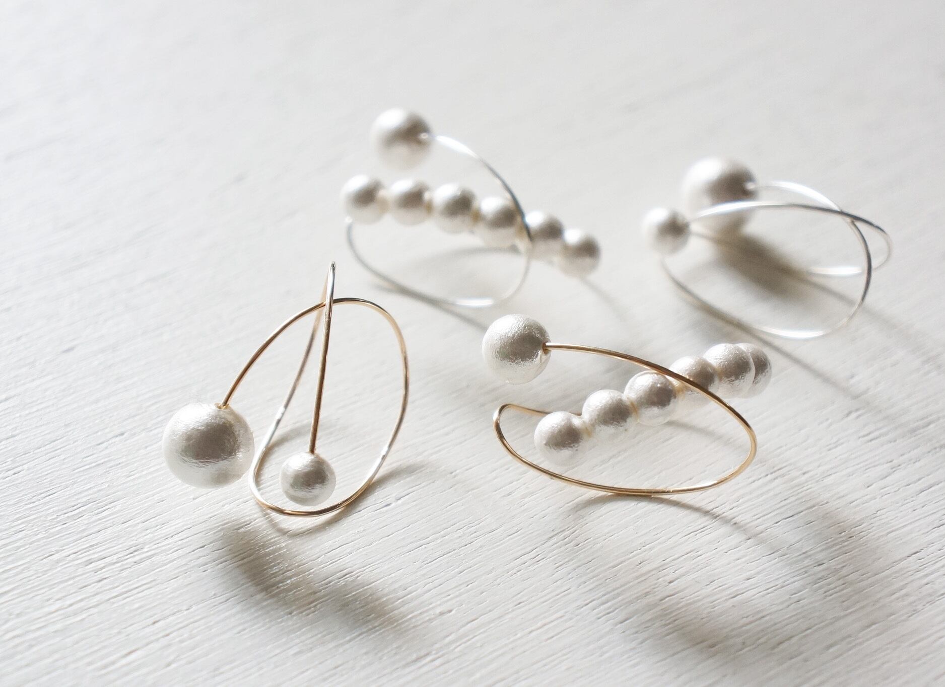 K14gfワイヤーとコットンパールのイヤーカフ。